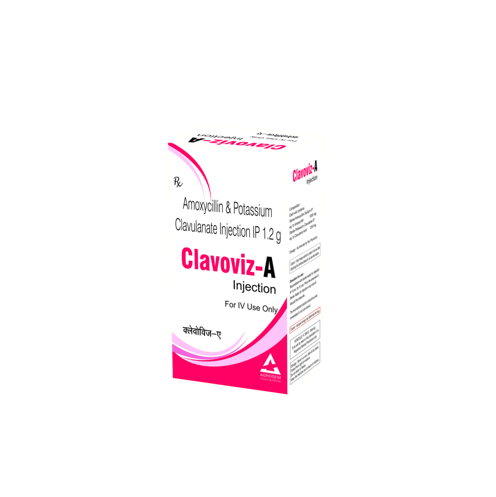 CLAVOVIZ-A INJECTION Product Name : CLAVOVIZ-A INJECTION Composition : Amoxycillin 1000mg + Pot. Colour : N/A DOSAGE : As Directed by the Physician. STORAGE : Store in a cool, dark & dry place. Manufactured By : AGRON REMEDIES PVT. LTD. Certified Plant : WHO-GMP, ISO 9001-2015, TCL & JAS-ANZ Certified Company since 1986. Marketed By : AGRON REMEDIES PVT. LTD. Contact Number : +91 8859000627 Email Address : remedies.agron@gmail.com Official Websites : www.agronremedies.com www.agrogem.net Our Service : PCD Pharma Franchise, Third Party Manufacturing, Export & Govt. Tender Supply.