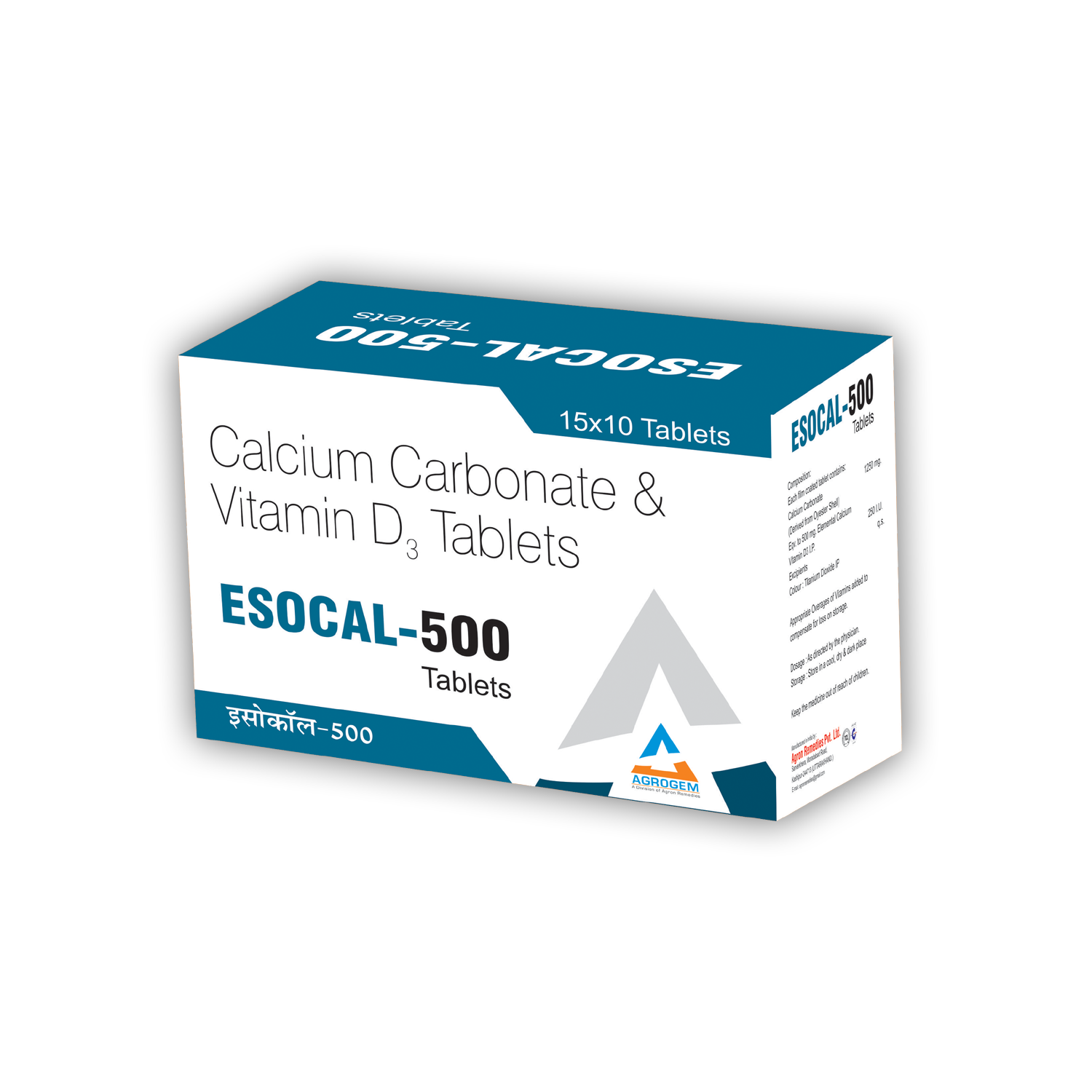 ESOCAL -500 Tablets Product Name : ESOCAL -500 Tablets Tablets Composition : Calcium 500mg+Vit. Colour : N/A DOSAGE : As Directed by the Physician. STORAGE : Store in a cool, dark & dry place. Manufactured By : AGRON REMEDIES PVT. LTD. Certified Plant : WHO-GMP, ISO 9001-2015, TCL & JAS-ANZ Certified Company since 1986. Marketed By : AGRON REMEDIES PVT. LTD. Contact Number : +91 8859000627 Email Address : remedies.agron@gmail.com Official Websites : www.agronremedies.com www.agrogem.net Our Service : PCD Pharma Franchise, Third Party Manufacturing, Export & Govt. Tender Supply.