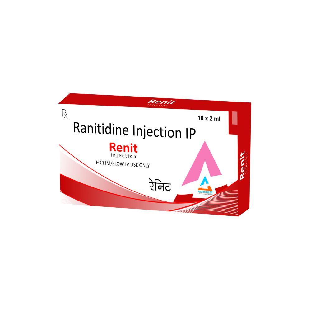 RENIT INJECTION Product Name : RENIT INJECTION Composition : Ranitidine HCl 50mg/2ml INJECTION Packing : 10x2ml. INJECTION Packing Type : w/cart. Colour : N/A DOSAGE : As Directed by the Physician. STORAGE : Store in a cool, dark & dry place. Manufactured By : AGRON REMEDIES PVT. LTD. Certified Plant : WHO-GMP, ISO 9001-2015, TCL & JAS-ANZ Certified Company since 1986. Marketed By : AGRON REMEDIES PVT. LTD. Contact Number : +91 8859000627 Email Address : remedies.agron@gmail.com Official Websites : www.agronremedies.com www.agrogem.net Our Service : PCD Pharma Franchise, Third Party Manufacturing, Export & Govt. Tender Supply.