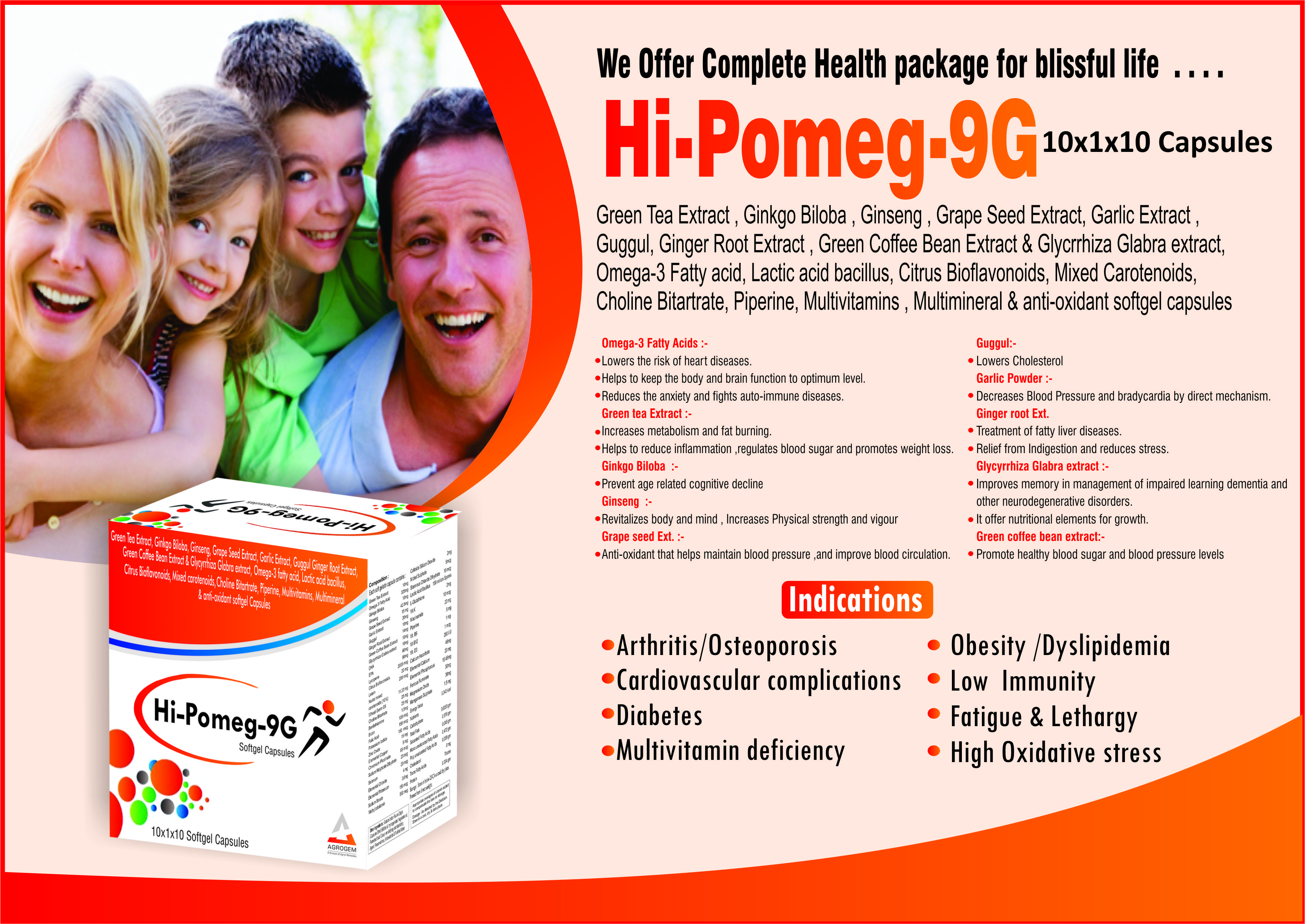 Composition: Green Tea Extract, Ginkgo biloba, Ginsern, Grape seed Extract, Garlic Extract, Guggul Ginger Root Extract, Green Coffee Bean Extract, Glycyrrhiza Glabra Extract, Omega-3 fatty acid, Lactic acid bacillus, Citrus Bioflaconoids, Mixed carotenoids, Choline Bitartrate, P...