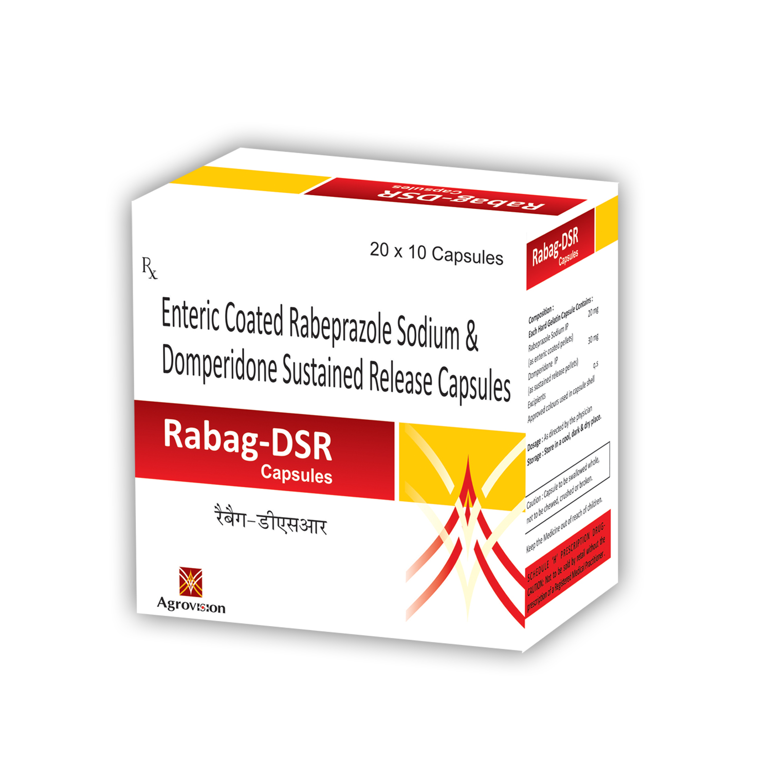 Composition: Rabeprazole 20mg +Domperidone 30mg (SR) Capsules | Packing: 20*10 ALU Capsules | Dosage: As Directed by the Physician.