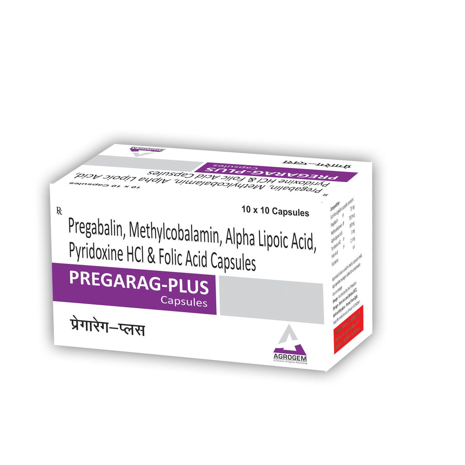 Composition: Pregabalin 75mg , Methylcobalamin 750mcg , Alpha Lipoic Acid 100mg , Pyridoxine 3mg , Folic Acid 1.5mg Capsules | Packing: 10x10 ALU-ALU Capsules | Dosage: As Directed by the Physician.