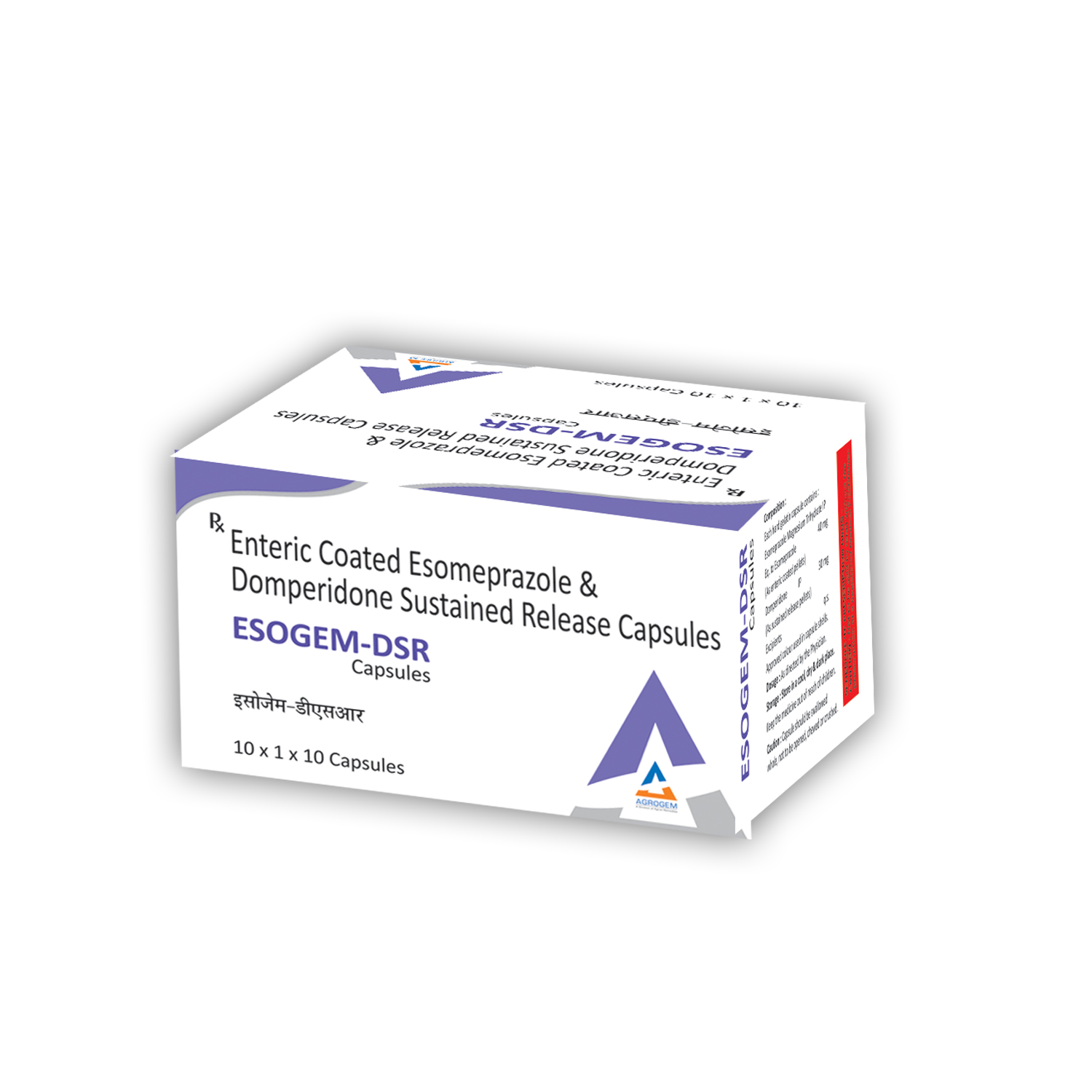 ESOGEM-DSR Capsules combine Esomeprazole 40mg and Domperidone 30mg (SR) for effective relief from acidity, GERD, nausea, and indigestion. Premium 10?10 ALU-ALU packing. MRP ?1950. Provides fast and long-lasting gastric comfort.