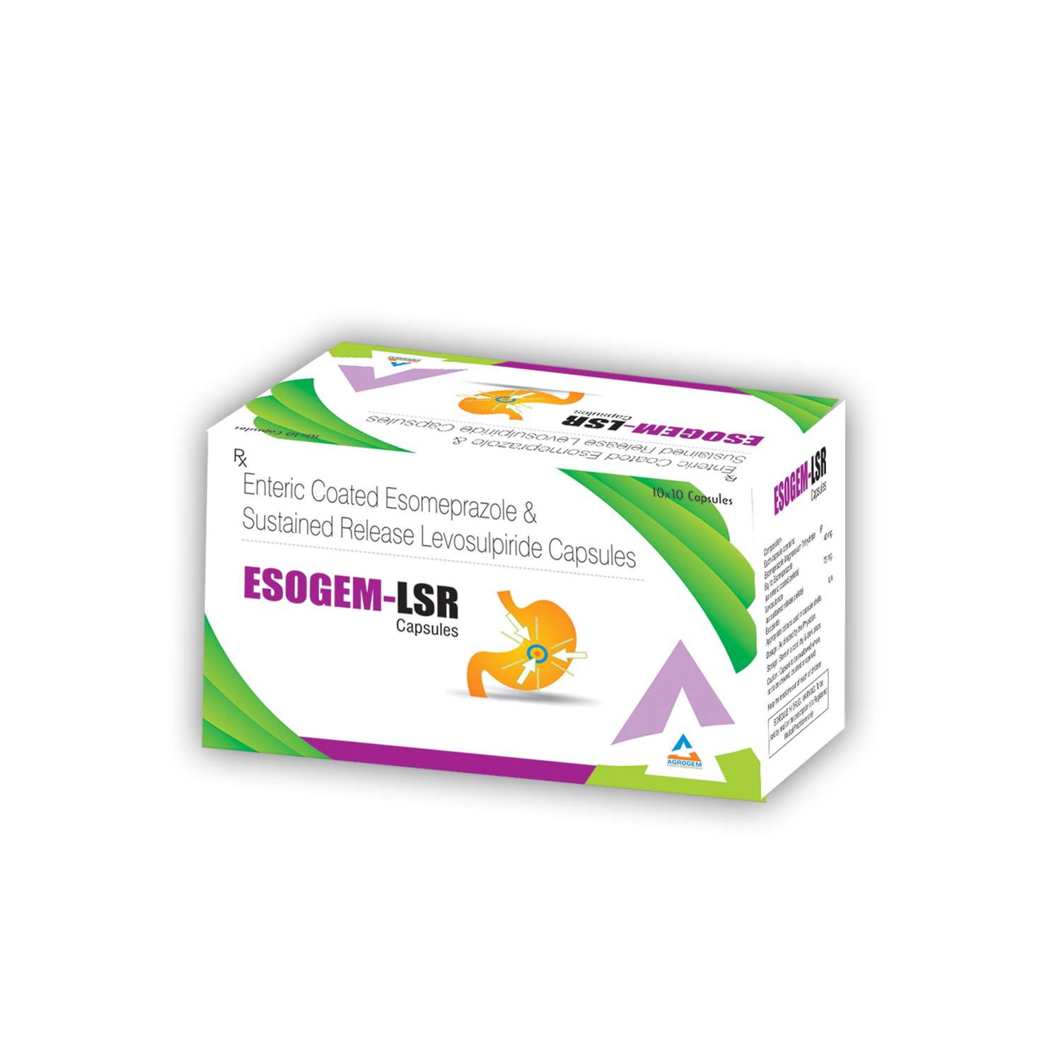 ESOGEM-LSR Capsules combine Esomeprazole 40mg with Levosulpiride 75mg (SR) for powerful and long-lasting relief from GERD, acidity, nausea, and functional dyspepsia. Premium 10?10 ALU-ALU pack. MRP ?2750.