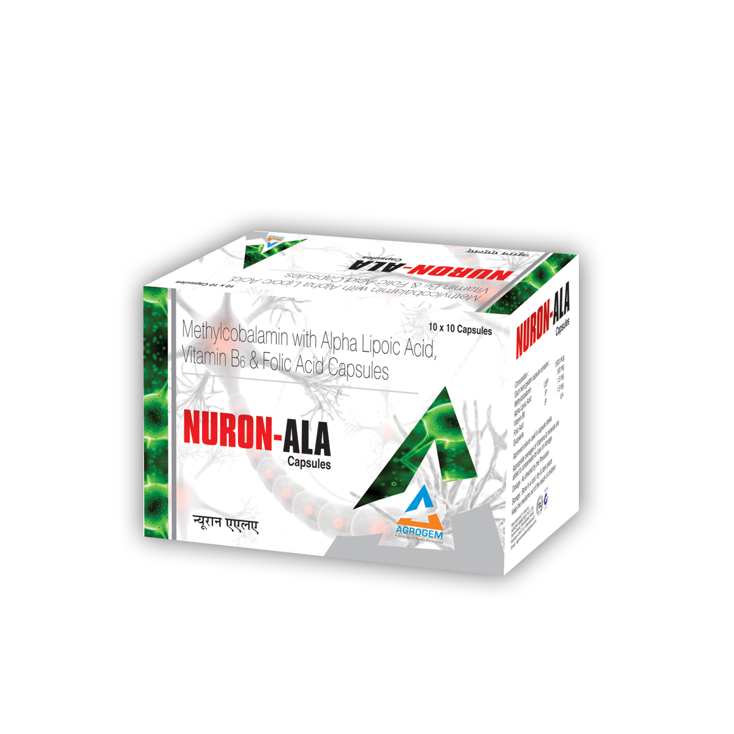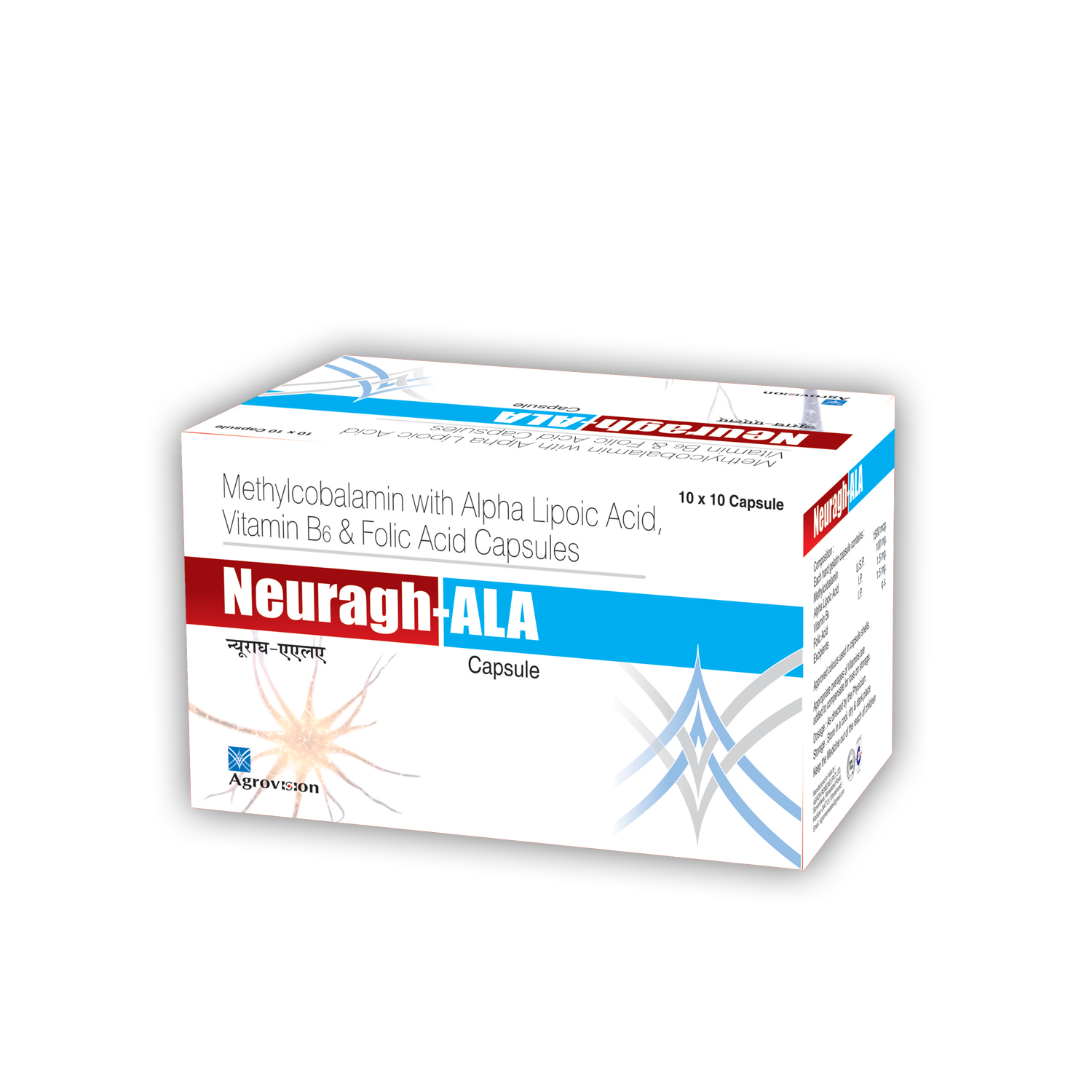 Composition: Methylcobalamine 1500mcg+Alpha Lipoic Acid 100mg+Vit. B1 10mg+Vit. B6 1.5mg+Folic Acid 1.5mg Capsules | Packing: 10X10 ALU Capsules | Dosage: As Directed by the Physician.