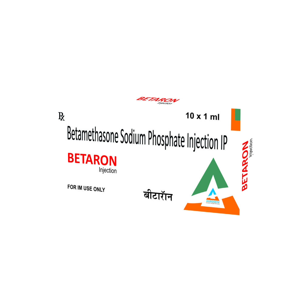 Betamethasone Sodium Phosphate IP Injection by Agron Remedies is a potent anti-inflammatory and immunosuppressive liquid injection. Available in 10x1ml vials for effective clinical use.