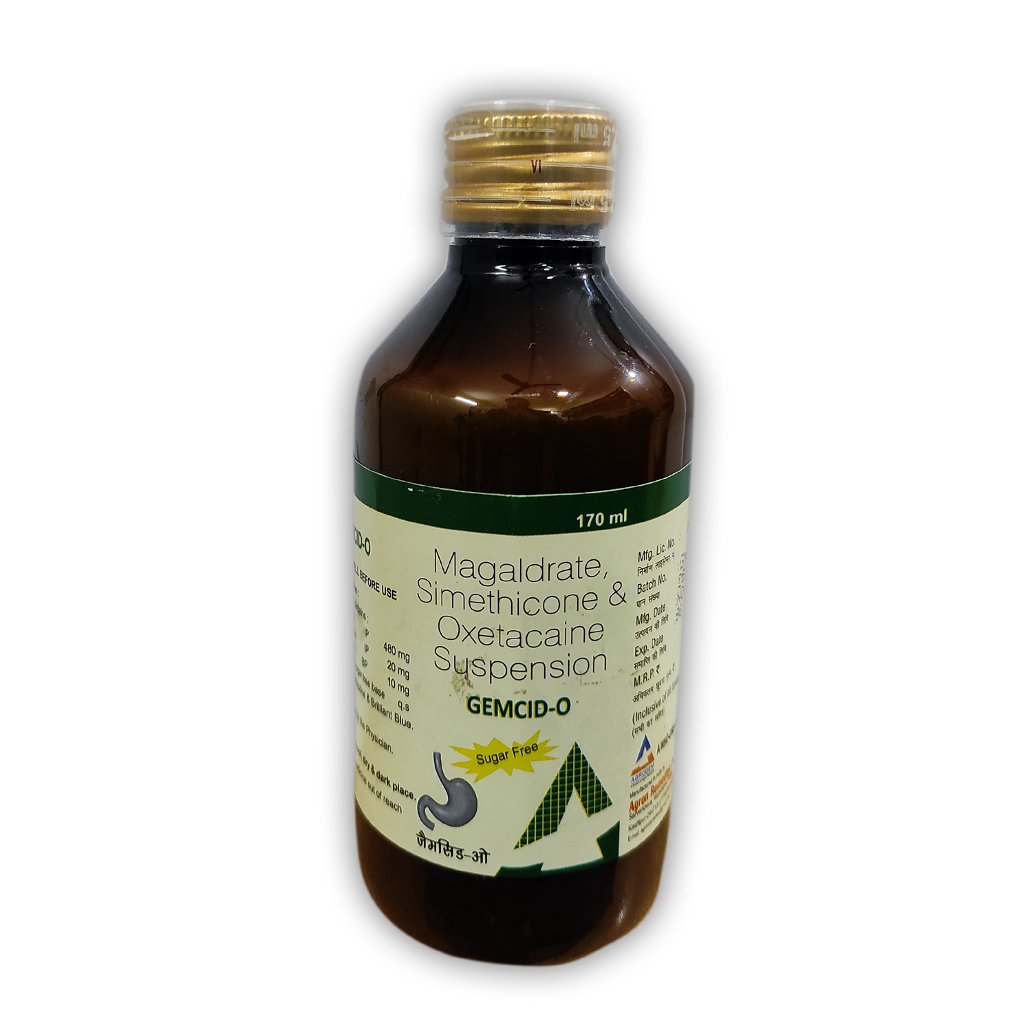 Composition: Magaldrate 480mg, Simethicone 20 mg, Oxetacaine 10mg/ml | Packing: 170ml w/o cart Syrup | Dosage: As Directed by the Physician.