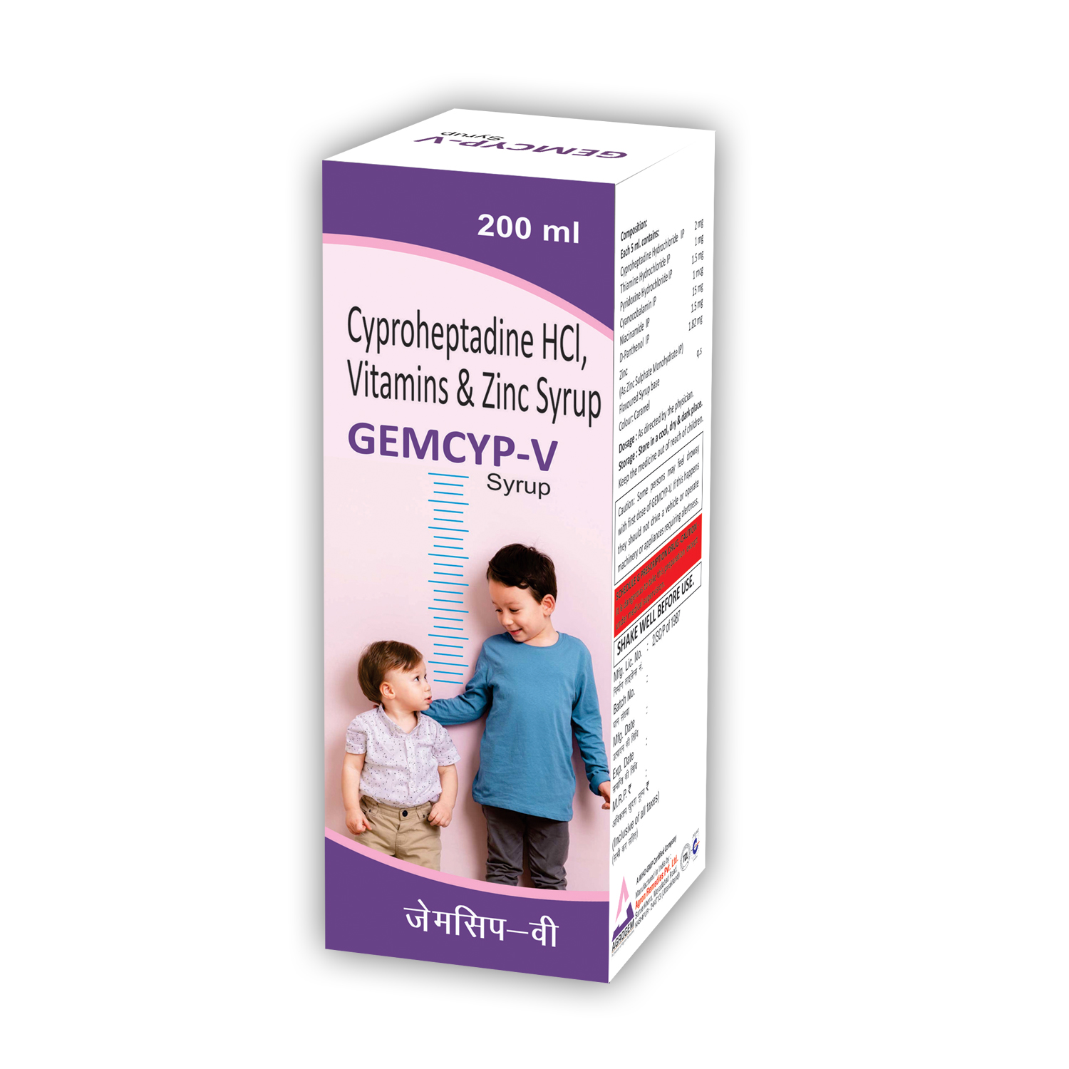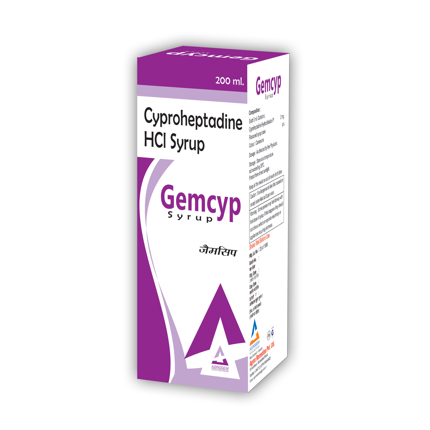 Composition: Cyproheptadine 2mg/5ml,Thiamine hcl1mg,pyridoxine hcl1.5 mg,Cyanocobalamin 1 mcg ,Niacinamide 15 mg ,D-Panthenol 1.50mg ,zinc 1.82 mg/5ml | Packing: 200 ml w/cart Syrup | Dosage: As Directed by the Physician.