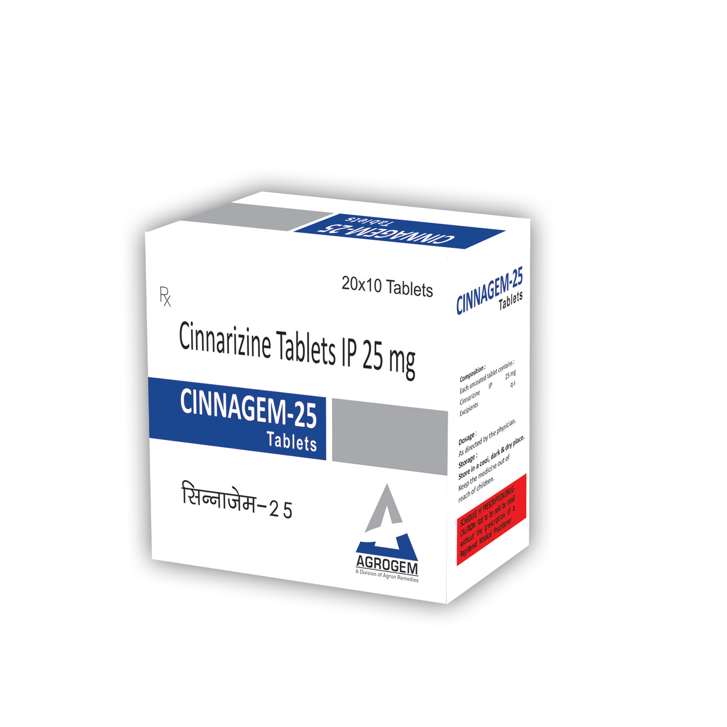 Composition: Cinnarizine 25 mg | Packing: 20*10 ALU-ALU Tablets | Dosage: As Directed by the Physician.