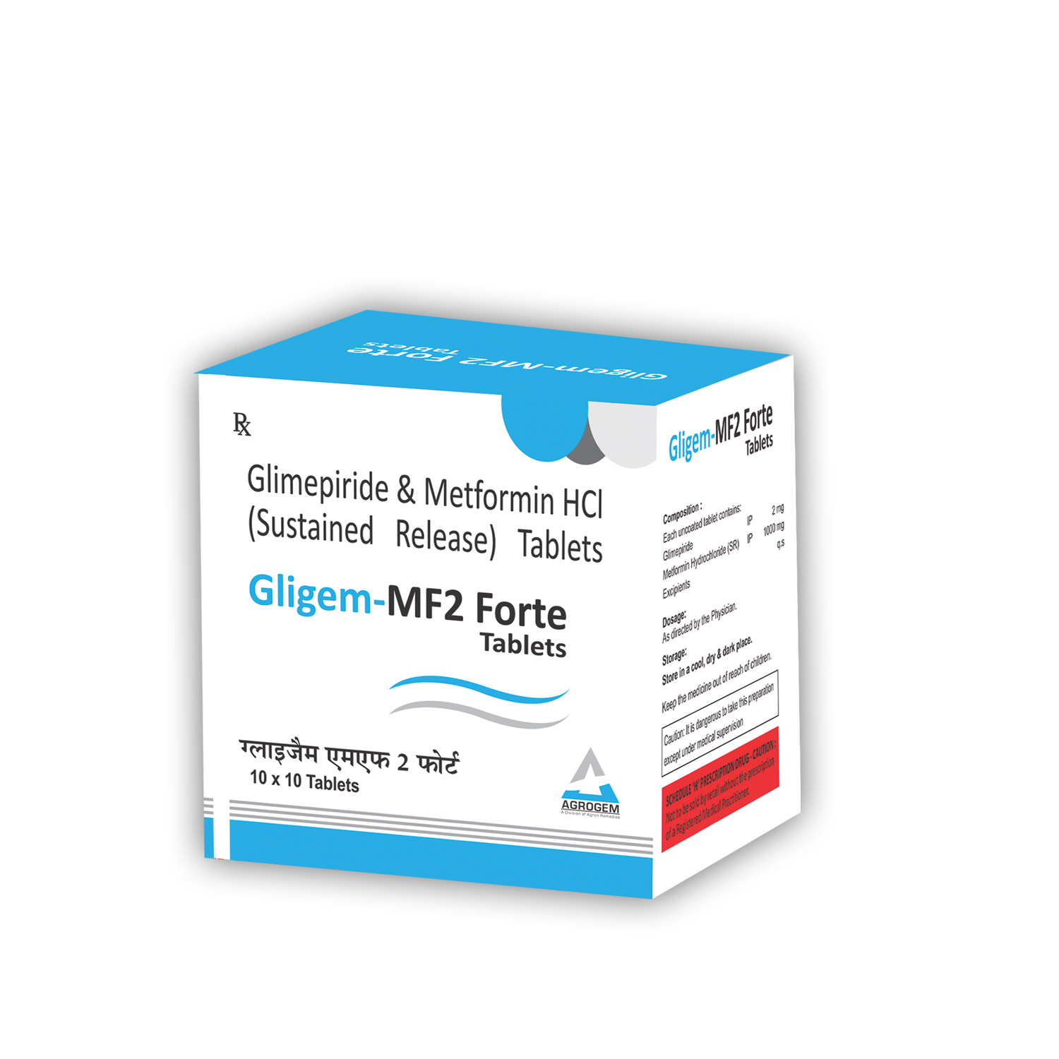 Composition: Glimpride 2 mg ,metformin HCL 1000 mg (as sustained Release) | Packing: 10*10 BL Tablets | Dosage: As Directed by the Physician.