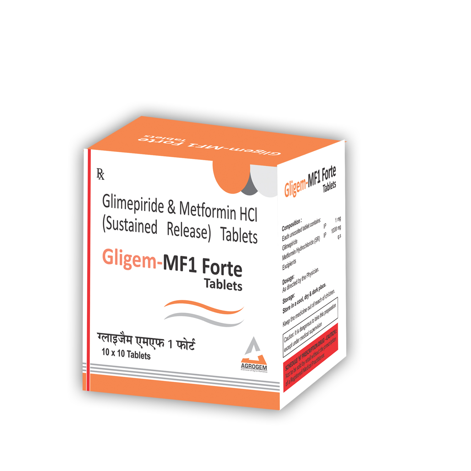 Composition: Glimpride 1 mg ,metformin HCL 1000 mg (as sustained Release) | Packing: 10*10 BL Tablets | Dosage: As Directed by the Physician.