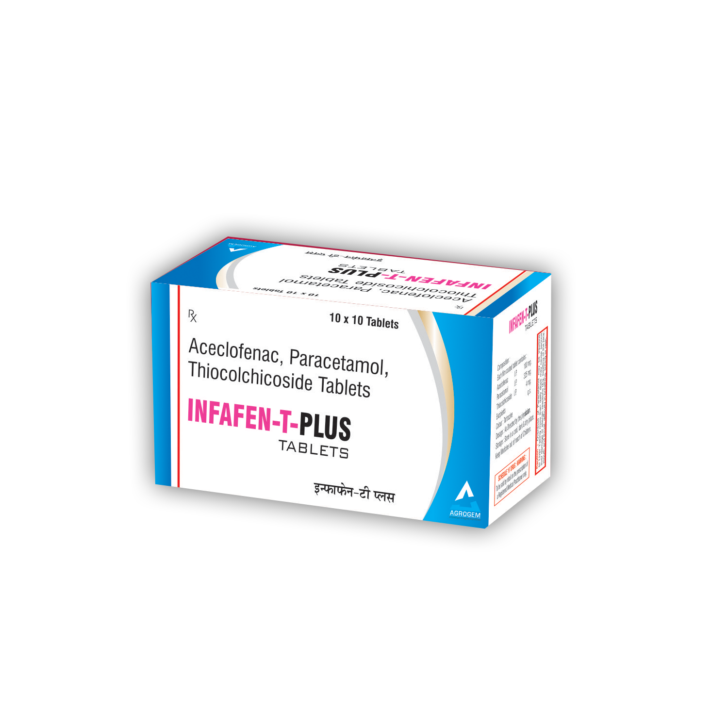 Composition: Aceclofenac 100 mg, Thiocolchicoside 8 mg | Packing: 10*10 ALU-ALU Tablets | Dosage: As Directed by the Physician.