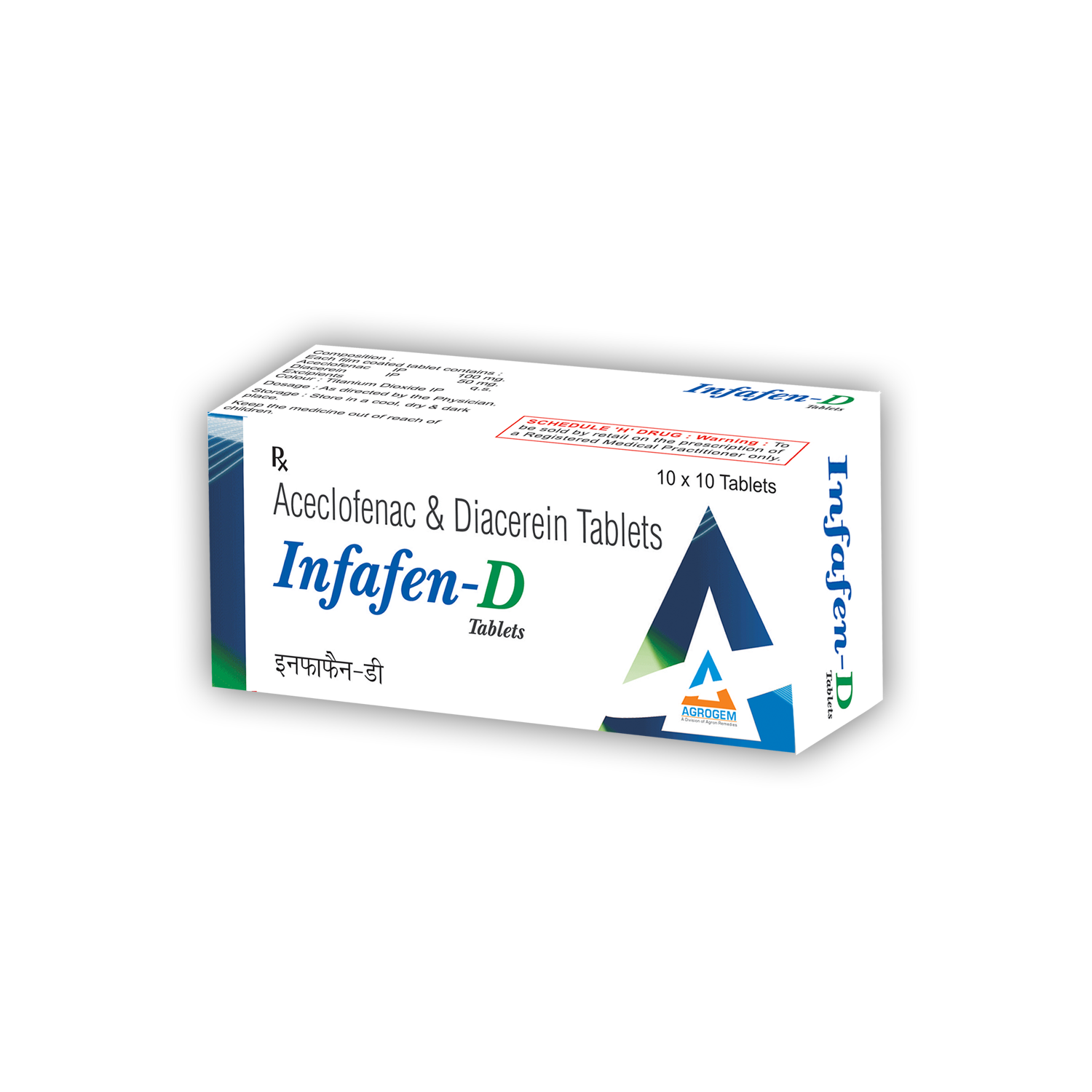 Composition: Diacerein 50 mg , Aceclofenac 100mg | Packing: 10*10 ALU-ALU Tablets | Dosage: As Directed by the Physician.