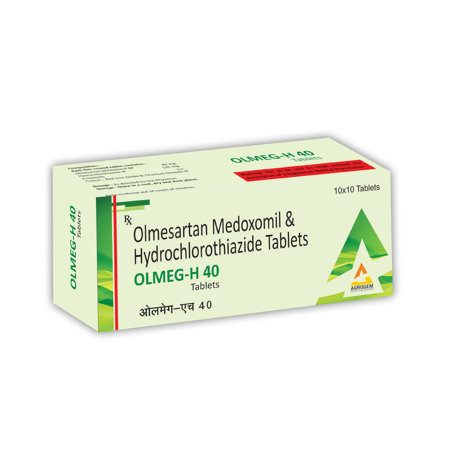 Composition: Olmesartan Medoxomil 40mg , HYDROCHLORTHIAAZIDE 12.5MG | Packing: 10x10 AL Tablets | Dosage: As Directed by the Physician.