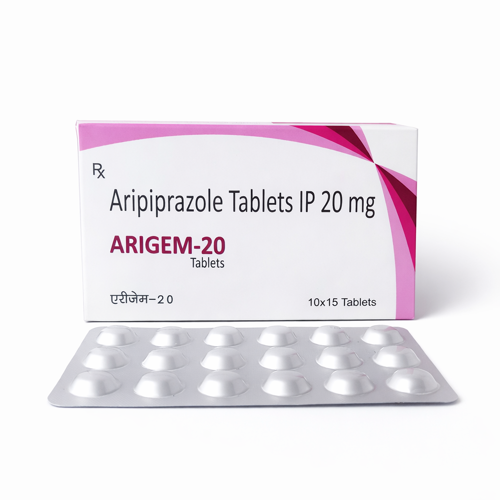 ARIGEM-20 Tablets contain Aripiprazole, an atypical antipsychotic that helps regulate dopamine and serotonin activity in the brain. It is widely used for treating schizophrenia, bipolar disorder, and irritability associated with autism. This medicine helps stabilize mood, reduce hallucinations, and improve cognitive functioning, making it a preferred choice among healthcare professionals.