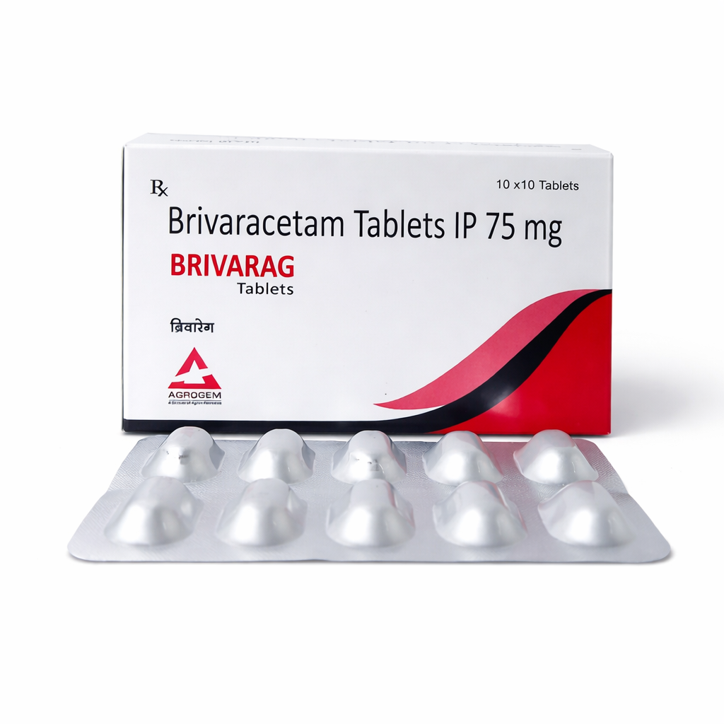 Brivaracetam Tablets IP 75 mg, marketed under the brand name BRIVARAG, is a modern anti-epileptic drug used in the management of seizures. It works by binding to synaptic vesicle protein SV2A in the brain, helping stabilize electrical activity and prevent seizure episodes. This medication is widely prescribed by neurologists for epilepsy patients due to its fast action and better tolerability profile. BRIVARAG ensures improved seizure control with minimal side effects when taken as directed.